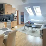 Man Happyアパ-トメントには,器具でいっぱいの台所,薄型テレビ,ダイニングエリアと暖炉付きの客室があります. Stará Lesnáの都市部のあるのはこのアパ-トから徒歩で5分です.